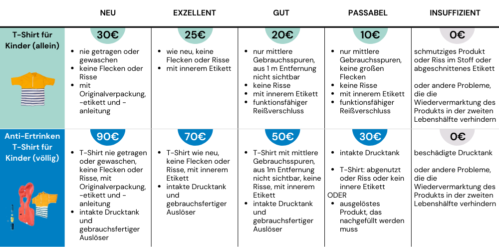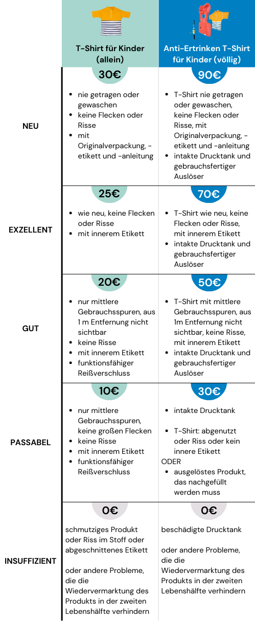 - Nur Floatee-Produkte mit einem kompletten Anti-Ertrinken T-Shirt oder einem Ersatz-T-Shirt für Kinder werden akzeptiert. Nachfüllpackungen sind vom Programm ausgeschlossen.