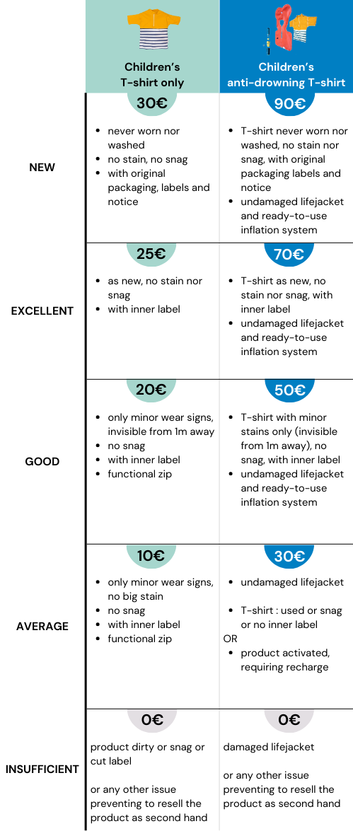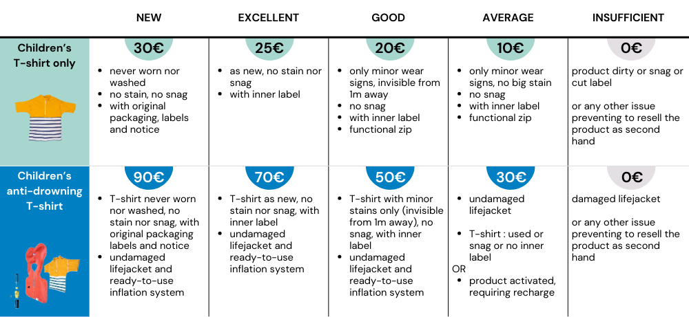 - Only Floatee complete anti-drowning T-shirts or children's spare T-shirts will be accepted. Recharges are excluded from the programme.