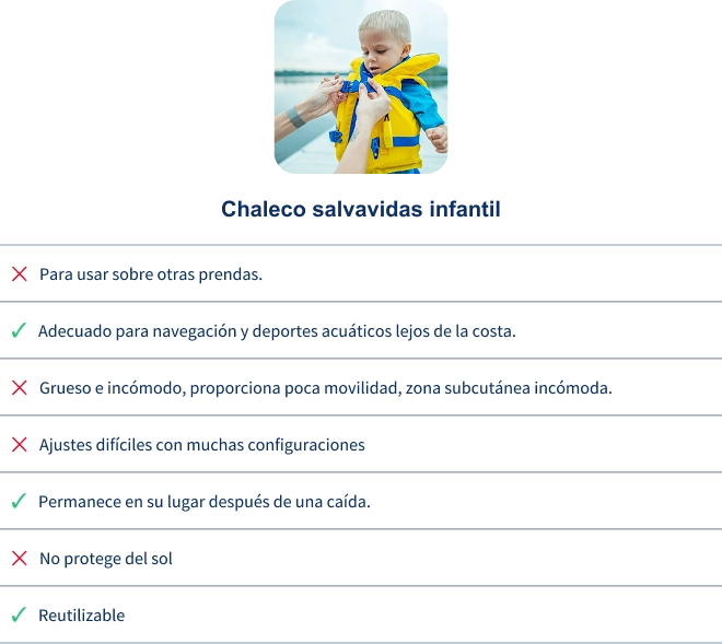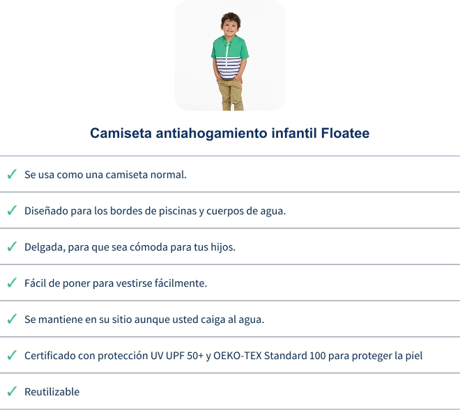 - Estar integrado en el tejido de la camiseta antiahogamiento