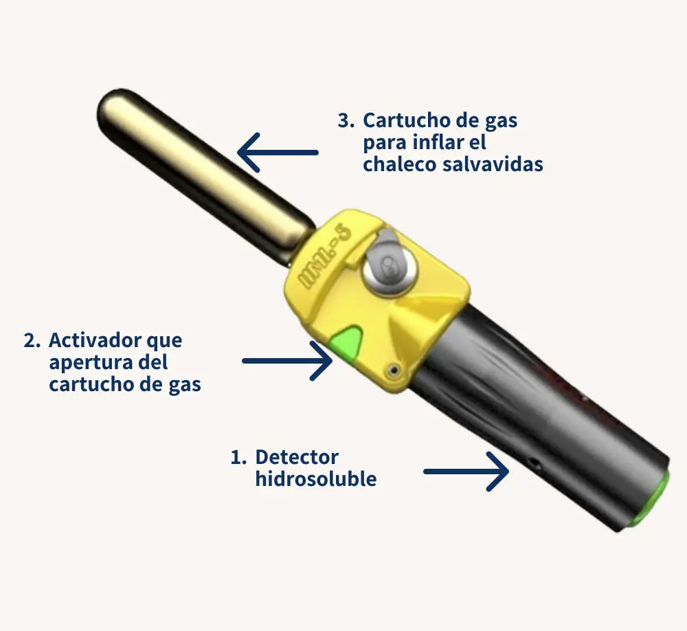 - Un activador conectado al pulmón que abre la botella de gas no inflamable.